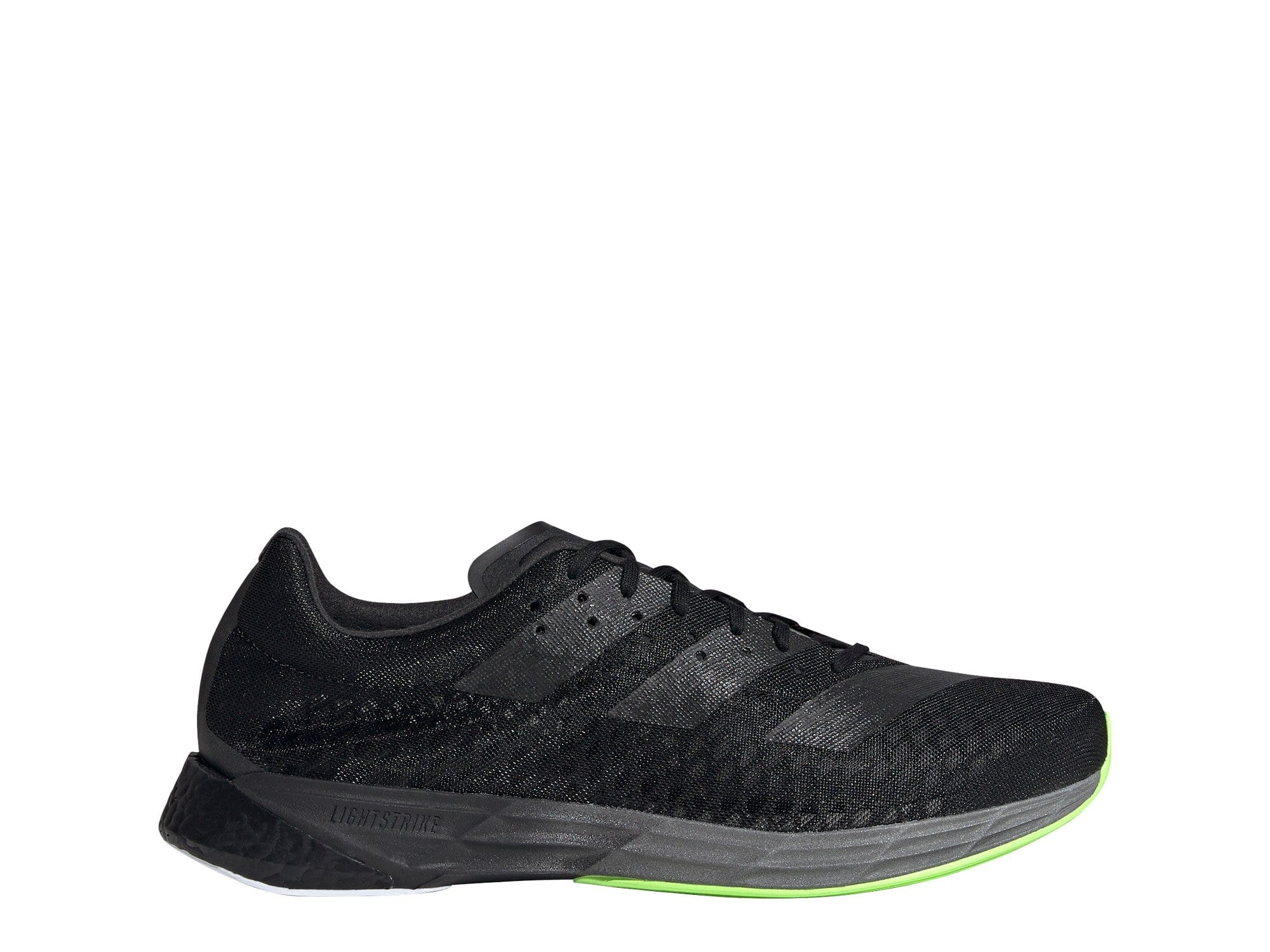 adidas teamed up with some of the world's top runners and coaches to create the adizero Pro. The ultra-lightweight mesh upper with internal grid system locks down the fit. In a first-of-its-kind midsole, the carbon plate propels you further and faster. Responsive Boost combines with flexible Lightstrike cushioning for a comfy ride and a snappy feel.
