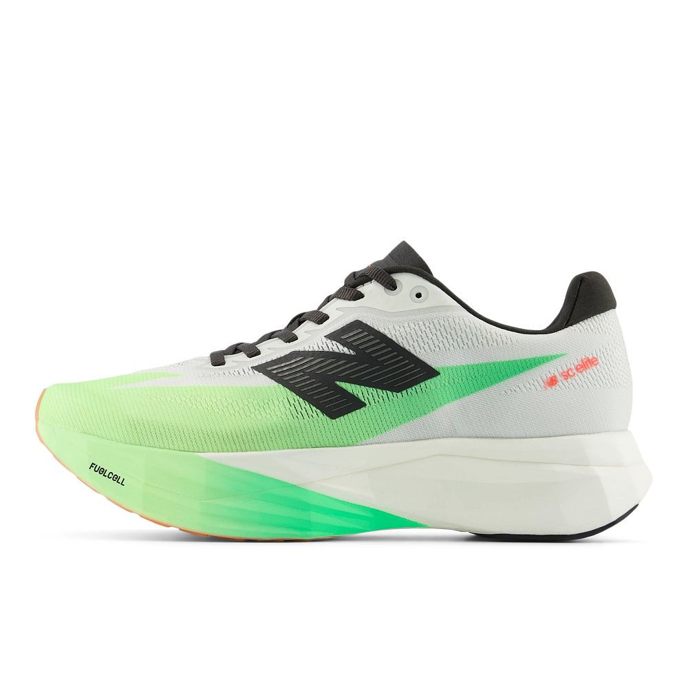 The FuelCell SC Elite v5 is a race day shoe designed for the moments when seconds really do count. The propulsive feeling of FuelCell is combined with a thinner carbon fiber plate, offering superior energy return in a lightweight package.