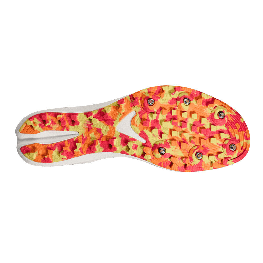 Built off the blueprints of the Crescendo MD, the new Crescendo XC delivers an approachable race flat for the cross-country crowd. Geared for up-and-coming athletes, this entry-level spinoff features an adaptable rubber outsole tuned for various racecourses. Nimble, rugged, and inconceivably light, the Crescendo XC is equipped to handle many conditions with a 6-pin spike plate.